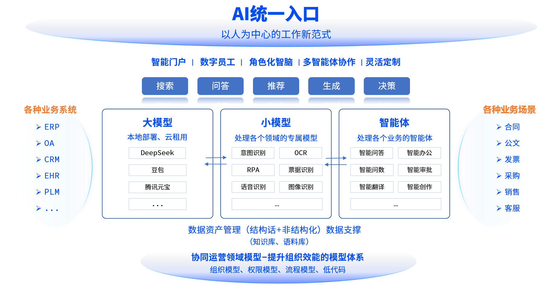 构建大模型+小模型+智能体的AI应用架构,赋能业务创新与管理创新,AI落地更智能更专业